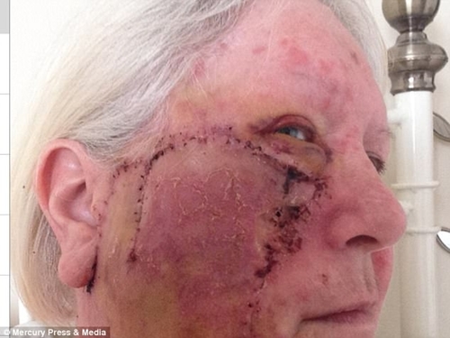 Sau phẫu thuật và hóa trị, bà cũng được ghép da từ đằng sau tai, đùi, vai và thậm chí cả mí mắt để tái tạo khuôn mặt sau khi cắt bỏ khối u.