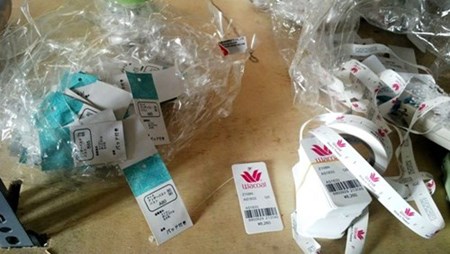 Các đối tượng tháo những tem nhãn của sản phẩm (phía bên trái) rồi thay thế bằng tem nhãn các nhãn hiệu nổi tiếng trên thị trường (bên phải). |