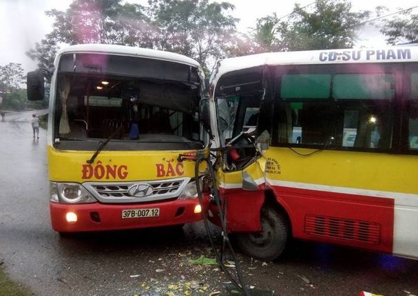 Vụ tai nạn giữa 2 xe buýt Đông Bắc đối đầu nhau trên QL46, đoạn qua xã Đồng Văn, huyện Thanh Chương vào ngày 8/10/2017. |