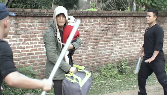 Cảnh mang con trai Quỳnh bỏ trốn nhưng bị phát hiện. |
