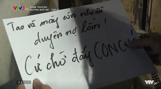 Không chỉ vậy, My sói (Thu Quỳnh) đã bắt đầu nhằm vào Quỳnh khi cho in những hình ảnh gợi cảm của cô trước đây rồi dán khắp phòng trọ. My còn để lại lời nhắn đe dọa Quỳnh.