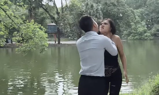 Kiên xuất hiện đúng lúc My gây sự với Đào và không ngần ngại ra tay với My giữa thanh thiên bạch nhật. Không những bóp cổ, xô ngã, Kiên còn thẳng tay tát My và cảnh cáo không được động tới Đào.