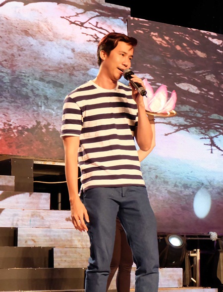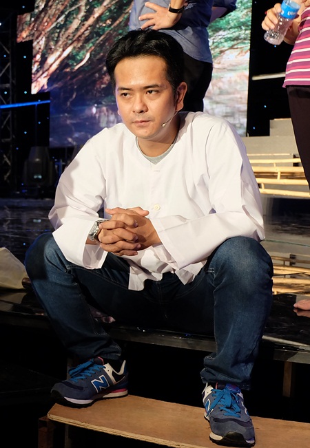 Hùng Thuận tỏ ra căng thẳng khi lần đầu hát cải lương. Anh đến trường quay khá sớm để có thêm thời gian làm quen với sân khấu.