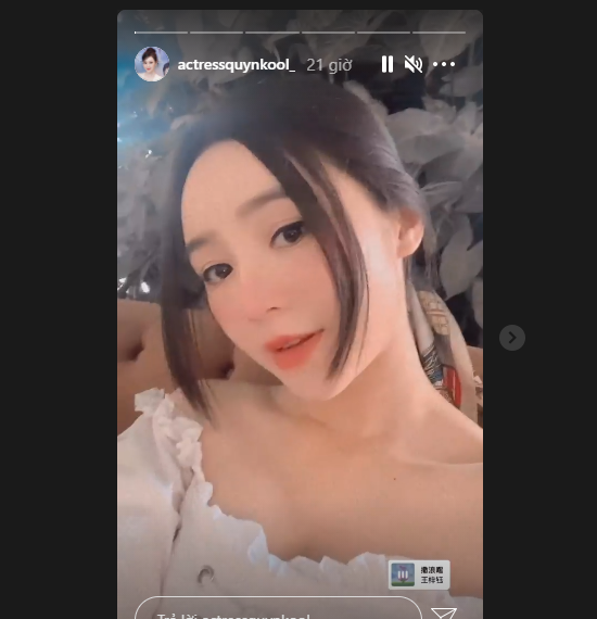 Chiều ngày 7/4, nữ diễn viên Quỳnh Kool đăng tải đoạn clip dài vọn vẹn 10s trên trang Instagram cá nhân. Từ khoảnh khắc được quay trong clip, cư dân mạng có thể thấy nhan sắc xinh đẹp và thần thái quyến rũ, gợi cảm của cô nàng. Theo đó, nữ diễn viên "Hướng dương ngược nắng" chọn chiếc áo gam màu trắng trễ vai, trang điểm nhẹ nhàng theo phong cách "nàng thơ". Ở một vài góc máy, Quỳnh Kool còn để lộ "lấp ló" vòng 1 khiến cộng đồng mạng "đứng ngồi không yên".