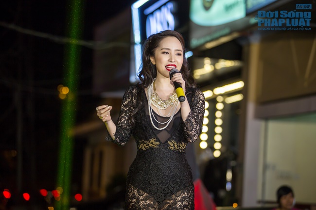 | Cô bước lên sân khấu của sự kiện và trình diễn một ca khúc vô cùng sôi động như một món quà gửi tặng tới Vân Quỳnh. |