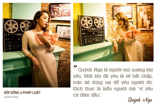 “Quỳnh Nga là người mù quáng khi yêu. Một khi đã yêu là sẽ bất chấp tất cả lời nói của những người xung quanh, dù tốt dù xấu. Kể cả mình biết họ nói đúng đó, nhưng cũng sẽ bất chấp, mặc kệ đúng sai để yêu người đó. Để mà nói thì Quỳnh Nga đích thực là kiểu người mà ‘vì yêu cứ đâm đầu’ ấy”, nữ diễn viên tự nhận xét về mình.