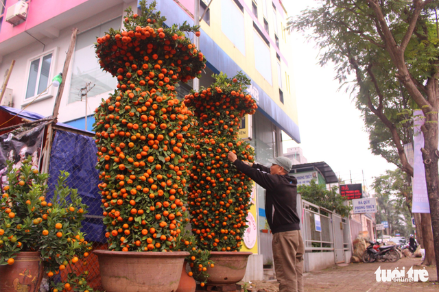 Cây quýt được nuôi trồng khoảng 8 năm mới đủ lớn để tạo dáng lục bình. Ảnh: Tuổi Trẻ |