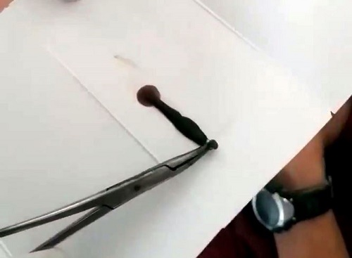 Con đỉa được các bác sỹ lấy ra từ mũi bệnh nhân - Ảnh: Tiền phong |