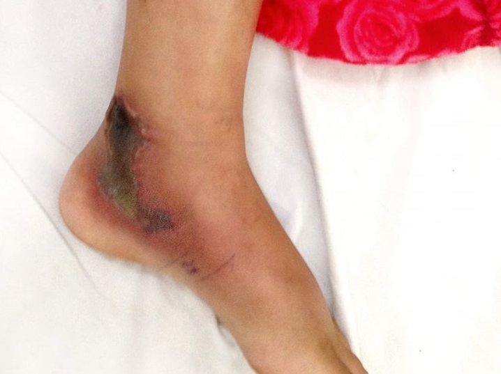 Tại khoa Nội tổng hợp - bệnh viện Nhi đồng 2, em nhập viện với tình trạng chân trái sưng to. Các bác sĩ nhận định: Đây là vết thương do rắn hổ mèo cắn và loại rắn này được xếp vào loại nguy hiểm. Hiện tại, chân bé đã dần bình phục sau thời gian điều trị.