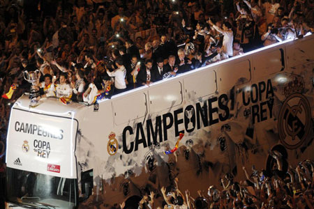 | Cảnh ăn mừng của cầu thủ và CĐV Real Madrid. |