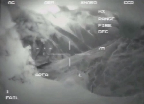 Trong video ngắn, một vật thể bay nhỏ đang bị theo dõi bởi một chiếc máy bay quân sự Mỹ tại khu vực sa mạc, "có thể" là ở Afghanistan. Khi mục tiêu nhỏ xíu biến mất tại một ngã rẽ, chùm ánh sáng laser – thứ mà nhiều người bình luận rằng có thể dễ dàng thêm vào bằng một công cụ chỉnh sửa đơn giản trên máy tính - dường như đã xuất hiện, bắn thằng vào chiếc máy bay không người lái.