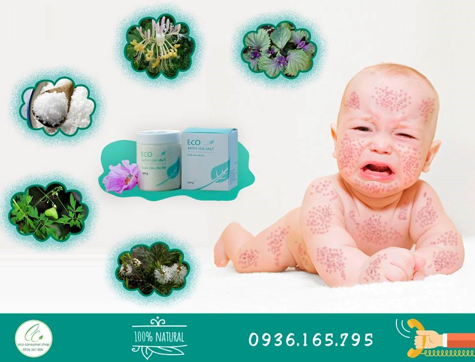 – Tắm thường xuyên cho trẻ giúp cho cơ thể mát, da sạch sẽ, các lỗ chân lông không bị bịt kín. Tắm bằng thuốc tím pha loãng, sữa tắm cho trẻ, không sử dụng loại xà phòng hay sữa tắm có độ pH không phù hợp với da. Có một số loại lá, quả dùng tắm rất tốt như mướp đắng, rau má, sài đất, vỏ dưa hấu, lá đào, lá dâu…