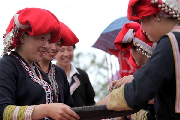 Lễ hội càng trở nên sôi động, hấp dẫn hơn với nghi thức tái hiện lễ cưới của người Dao đỏ. Diễn ra hai lần một ngày, khu du lịch đã phục dựng chi tiết mọi lễ nghi trong tập quán cưới xin của các chàng trai, cô gái Dao đỏ.