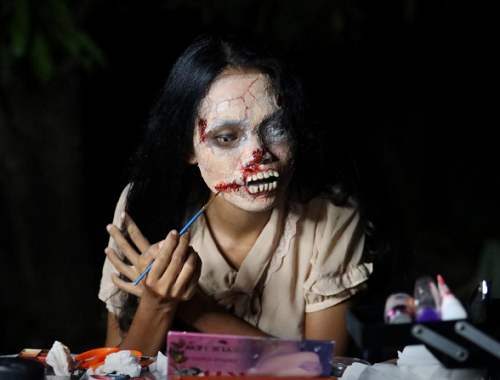 Lượng khán giả theo dõi livestream của Kanittha (32 tuổi) tăng vọt kể từ khi cô nảy ra ý tưởng táo bạo tự biến mình thành "zombie". Được biết, trước mỗi lần bán hàng trực tuyến vào đêm muộn, Kanittha mất khoảng 3 tiếng để hoàn thành lớp hóa trang.