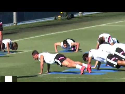 (ĐSPL) - Trong bài tập hít đất, Cristiano Ronaldo, biểu diễn động tác kèm theo những lần vỗ tay. Điều đó khiến ngôi sao người Bồ Đào Nha tốn nhiều sức hơn hẳn các đồng đội.