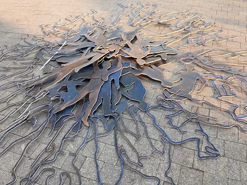 | Một điêu khắc rỗng được xếp đặt trên mặt sân Quảng trường như một điểm nhấn |
