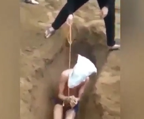 Sáng 27/3, mạng xã hội lan truyền clip dài 5 phút ghi lại cảnh một nhóm người hành hạ rồi đào hố để chôn sống một nạn nhân. Theo nội dung đoạn clip, sau khi bắt nam thanh niên cởi quần áo, chỉ còn mặc quần lót trên người, nhóm thanh niên dùng dép đánh nạn nhân. Tàn bạo hơn, nhóm thanh niên này đào mộ, bịt mặt nam thanh niên này rồi 'chôn sống'.