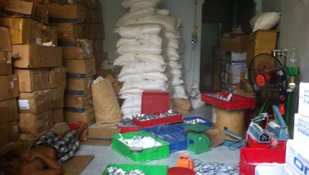 Ở cơ sở này, ông C. không để bảng hiệu công ty, nhưng vẫn ngày đêm rầm rộ sản xuất. Đây cũng là nơi chứa nguyên liệu muối, đường, bao bì, nhãn hiệu…liên quan đến các loại thực phẩm chức năng, đồng thời là nơi tá túc của gần chục công nhân. Tất cả cơ sở này ông C. giao cho người thanh niên làm việc lâu năm tên Th. quản lý.