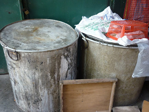 Thùng chứa mứt không được chùi rửa thường xuyên nên rất bẩn. |