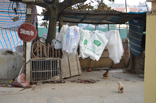 Các bao đựng mứt được phơi ở những nơi có nhiều vật nuôi. |