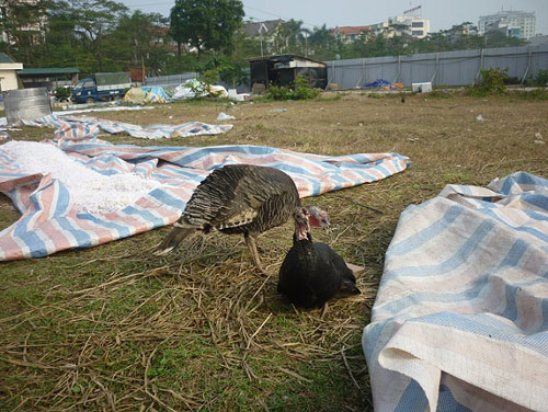 Bên cạnh các đống mứt luôn có gia cầm kiếm ăn. |