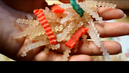 | Thạch khô được đựng trong những túi bóng nilon không hề có nhãn mác, nguồn gốc, cách sử dụng. |