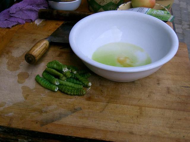 Sơ chế những chú sâu xanh. Ảnh minh họa |