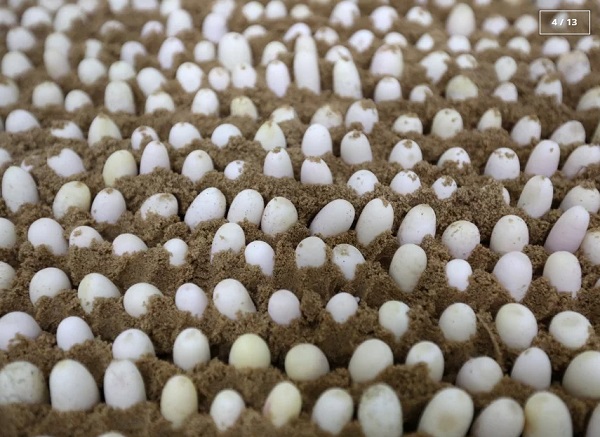 4. Trứng rắn được phủ cát để ấp tại trang trại rắn Yang Farong ở làng Zisiqiao. |