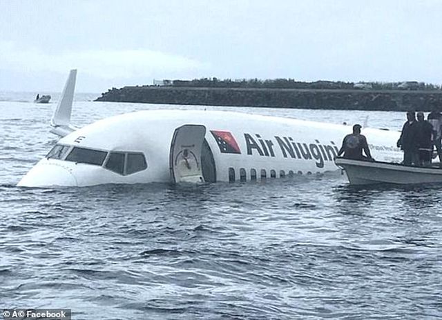 Máy bay Boeing 737 của hãng hàng không Air Niugini lao xuống biển.Ảnh: AFP |
