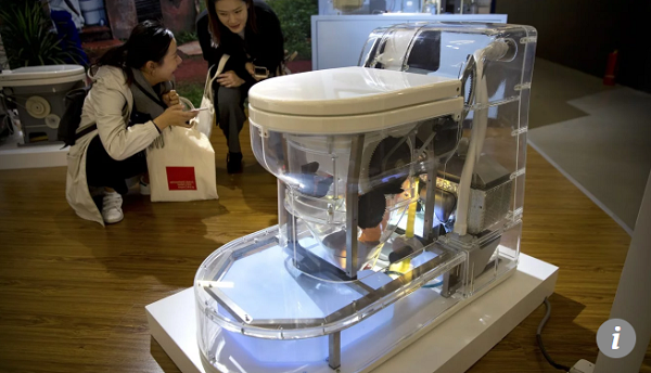 20 bệ toilet công nghệ cao được trưng bày tại hội chợ đều dùng phương pháp đặc biệt để phân hủy chất thải của con người và tiêu diệt mầm bệnh, để lại nước sạch hoặc chất rắn có thể được sử dụng làm phân bón hoặc xử lý an toàn ngoài trời.
