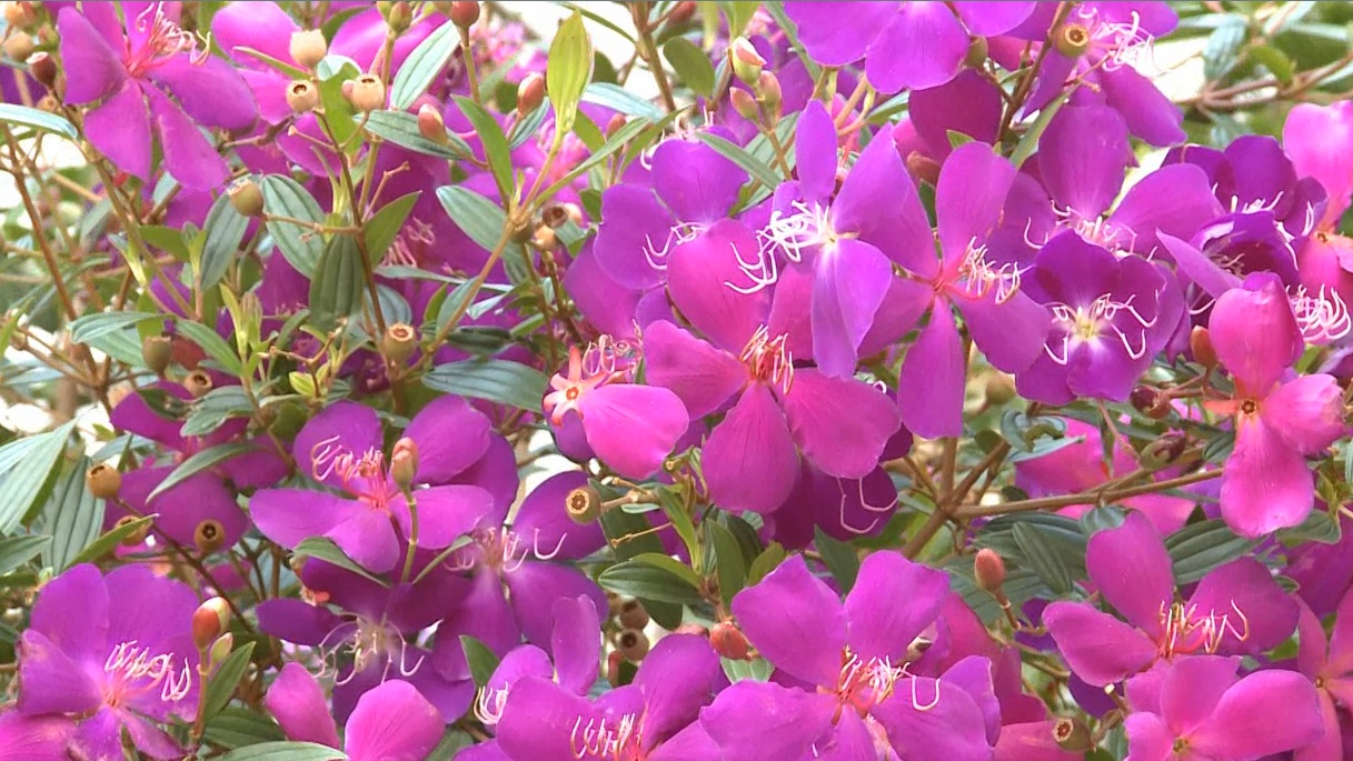 Hoa Mua thuộc họ Melastomafaceae, có 5 cánh và mang sắc tím rất đẹp, hoa có thể nở quanh năm. Từ trước đến nay hoa Mua xuất hiện không nhiều và chỉ được trồng rải rác, kể cả ở Đà Lạt. Nhưng ở đây Hoa Mua được trồng dày đặc với nhi ều chủng loại khác nhau. Sắc tím của hoa Mua sẽ khiến du khách cảm thấy thoải mái, thư giản hơn. Đến đây du khách có thể tha hồ thưởng ngoạn và chụp một vài kiểu hình để làm kỷ niệm cùng với loài hoa biểu trưng cho sự tinh khiết chung thủy này. Màu tím của hoa Mua đã tạo nên một bức tranh kỳ thú, khiến cho những ai có dịp chiêm ngưỡng điều phải òa lên vì thích thú.