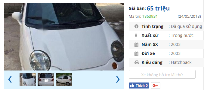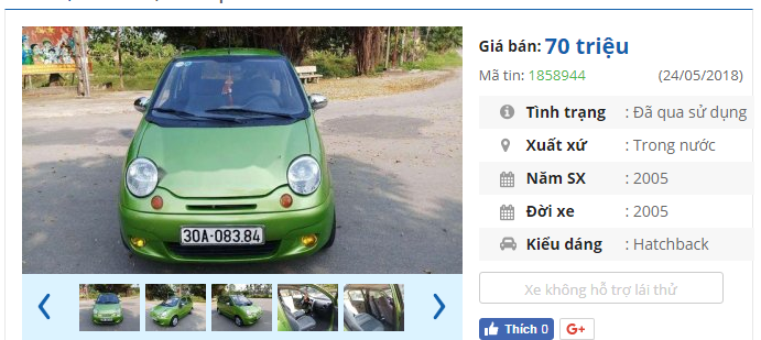 Chiếc xe Daewoo Matiz là mẫu xe được rao bán với giá 65 triệu đồng, với những lời cam kết không đâm đụng, không ngập nước, sử dụng tốt... đang được rao bán tràn lan trên chợ mạng. Dưới đây là những mẫu xe ô tô cũ đã qua sử dụng với mức giá giật mình chỉ dưới 70 triệu đồng.