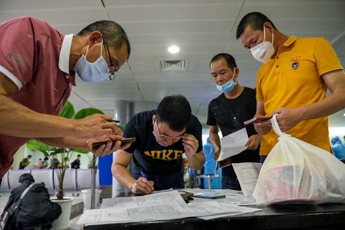 Các hành khách làm thủ tục khai báo y tế. Ảnh: Vnexpress |