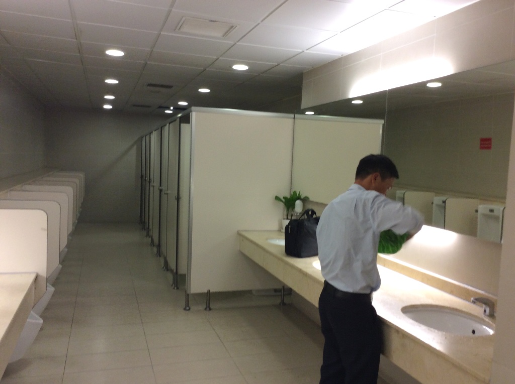 Còn về nhà vệ sinh, trong hai ngày liên tiếp “trải nghiệm” nhà vệ sinh tại sân bay Tân Sơn Nhất, chúng tôi nhận thấy điều kiện vệ sinh nơi đây không quá tệ. Sàn nhà sạch sẽ, không có mùi hôi thối. Nhân viên vệ sinh thường xuyên ra vào lau chùi.