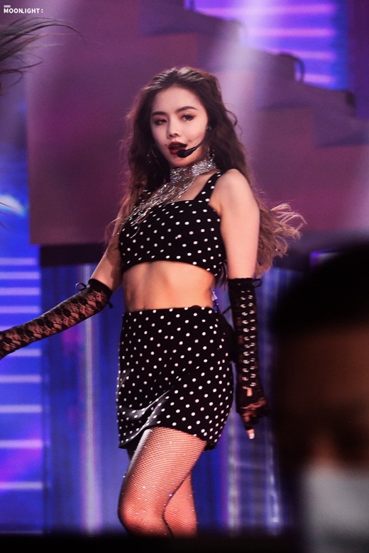 Dụ Ngôn đã có màn thể hiện tốt các nốt cao trong ca khúc "Hunt", xứng đáng là giọng ca chính của nhóm. Không chỉ vậy, thân hình bốc lửa của nàng em út cũng khiến nhiều fan "mất máu". |