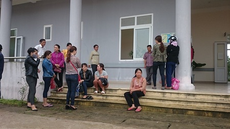 Người nhà đang chờ công an khám nghiệm tử thi sản phụ T. Ảnh: Thanh Niên |