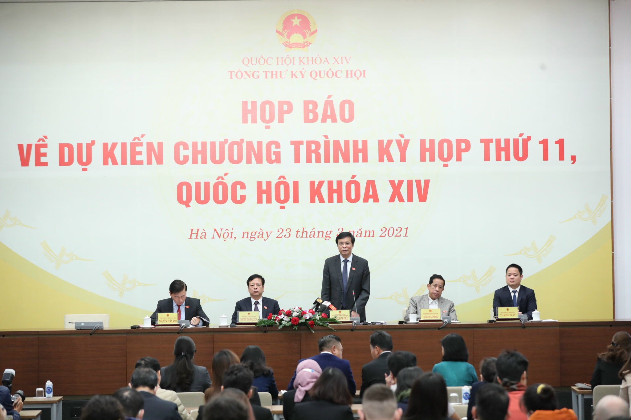 Sáng 23/3, Tổng Thư ký Quốc hội, Chủ nhiệm Văn phòng Quốc hội Nguyễn Hạnh Phúc chủ trì họp báo về chương trình kỳ họp thứ 11, Quốc hội khóa XIV.