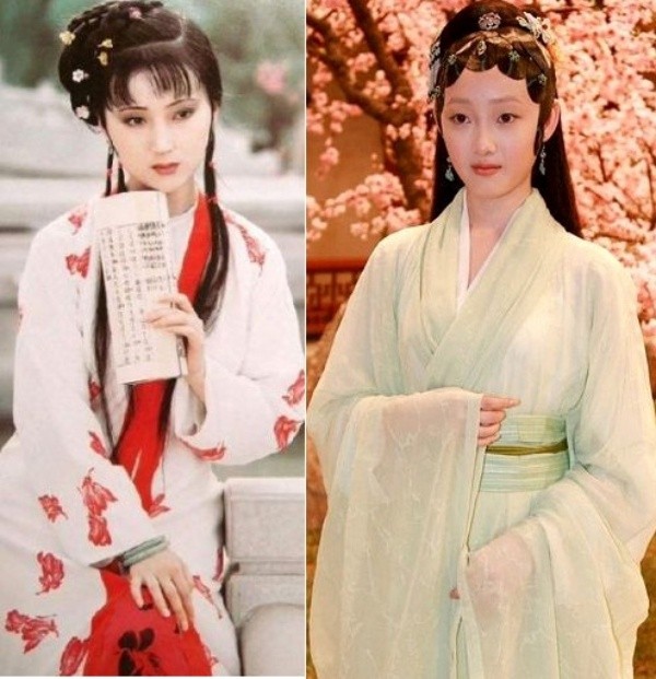 Lâm Đại Ngọc kinh điển do Trần Hiểu Húc đóng (trái) e lệ và mỏng manh, đối lập hoàn toàn với vẻ đẹp tươi trẻ đầy sức sống của Mộng Tiệp. |