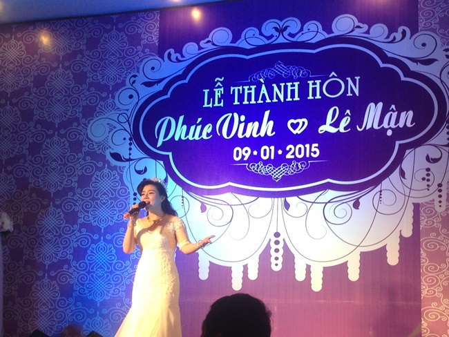 | Lê Mận diện váy cưới hát tặng quan khách hai họ và bạn bè trong ngày trọng đại của mình. |