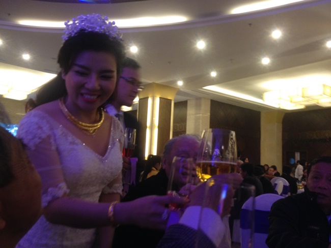 | Lê Mận rạng rỡ chúc rượu khách mời. |