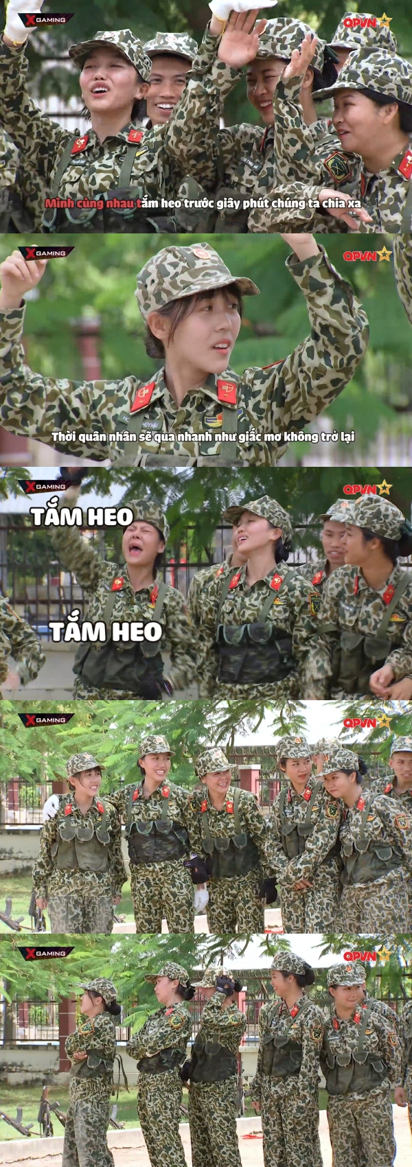 6 cô gái được chia làm 2 đội kết hợp cùng các chiến sĩ lữ đoàn để thực hiện hội thao. Theo đó Diệu Nhi - Nam Thư - Hậu Hoàng được xếp vào đội 1, Kỳ Duyên - Khánh Vân - Dương Hoàng Yến thuộc đội 2. Mũi trưởng Nguyễn Viết Long đã thông báo tin "sét đánh", đội về cuối sẽ nhận hình phạt rửa chuồng heo và tắm cho các chú heo của đơn vị, còn đội thắng cuộc sẽ được đi ăn ở căng tin. Vừa nghe đến tắm heo, cô nàng Khánh Vân tỏ ra vô cùng thích thú, Hậu Hoàng còn kêu cô nàng ‘xin thua luôn đi’.