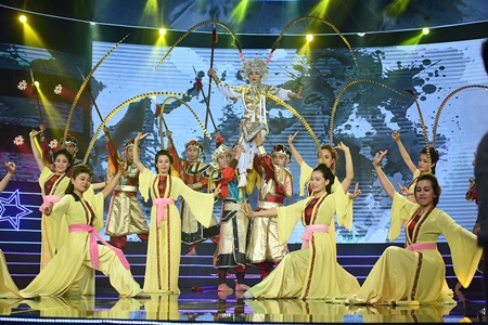 Thiêng Ngân thử sức với ca cảnh tuồng cổ Gấm vóc biên thùy. Trên bài hát cùng tên của nhạc sĩ Minh Tâm, Thiêng Ngân không chỉ hát mà còn thể hiện những động tác vũ đạo cực khó. Thiêng Ngân đã múa thương, múa lông chim trĩ, vừa thể hiện vai kép, vừa thể hiện vai đào trong tiết mục.