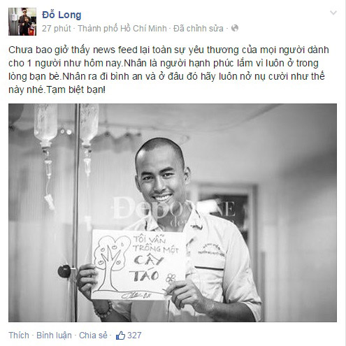 Trên trang cá nhân nhiều sao Việt đã bày tỏ nỗi buồn, đau xót trước sự ra đi của người mẫu điển trai.