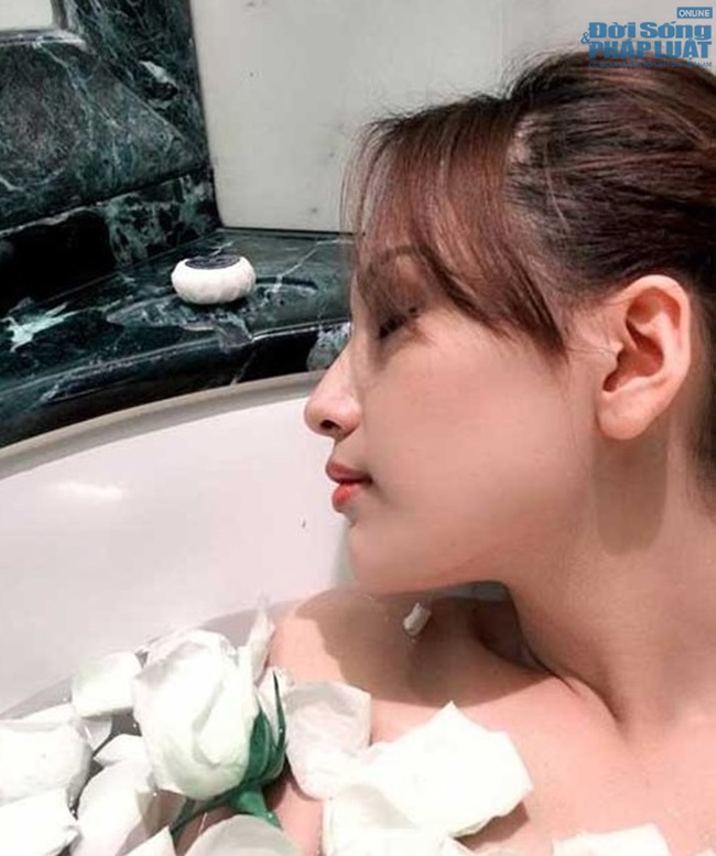 | Ngọc Quyên cũng từng chia sẻ ảnh tắm bồn với khuôn mặt khá ưu tư. |