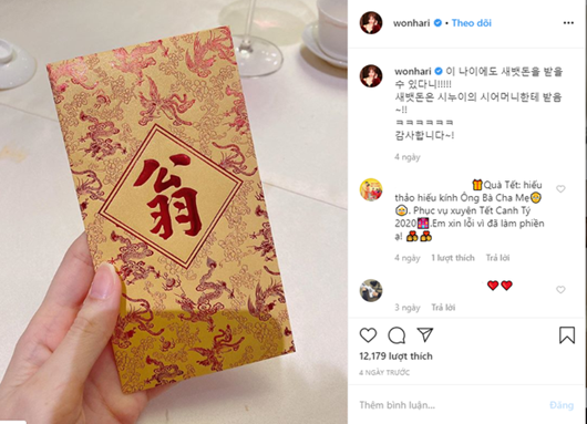 Hari Won hứng khởi đăng ảnh khoe ngay sau khi nhận được lì xì. |