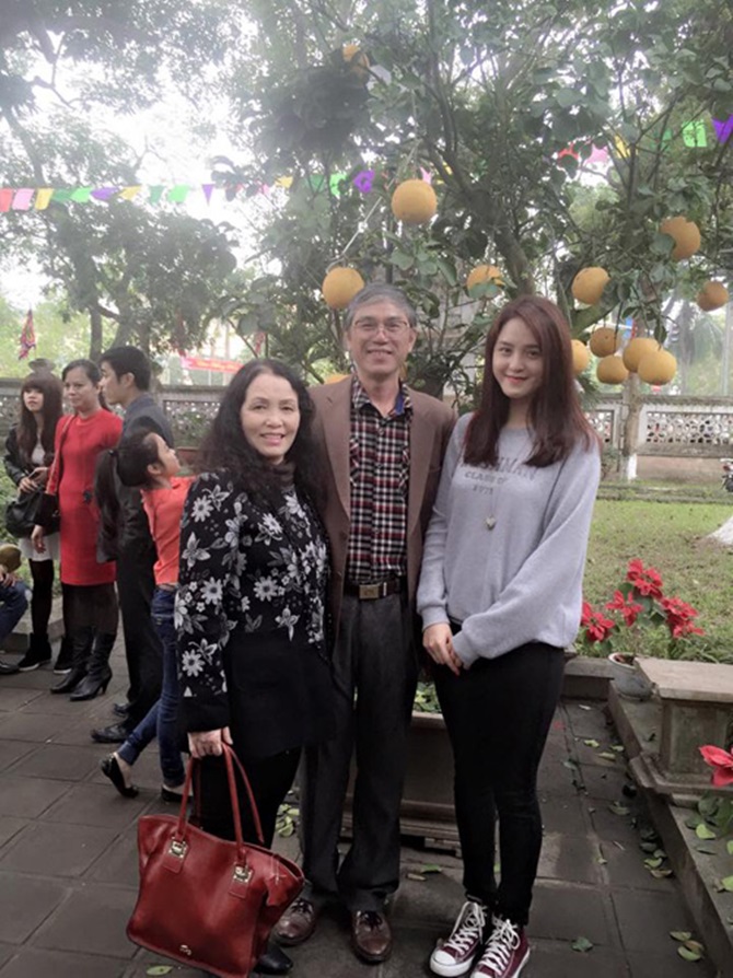 ![]() Hoa hậu Ngọc Hân cùng bố mẹ, em trai đi chùa cầu bình an, rồi sau đó chúc Tết ở nhà bà ngoại. |