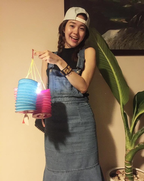 Thanh Hằng cũng không quên khoe mình có đèn lồng đi chơi Trung thu. |