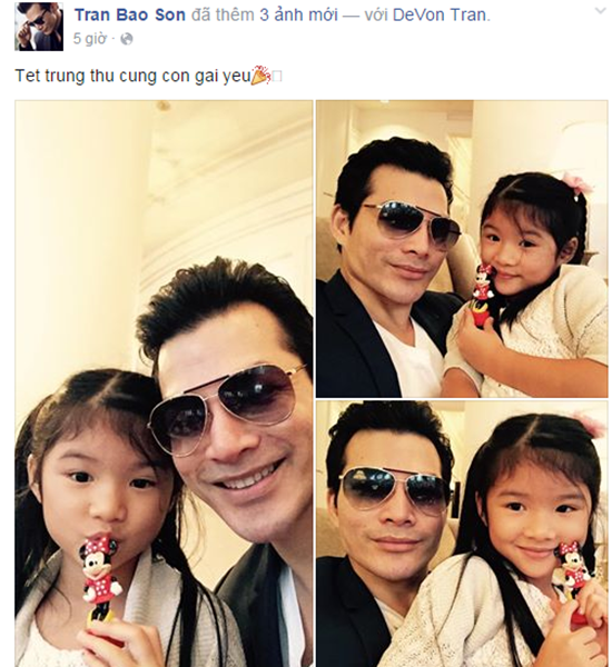 Trần Bảo Sơn vui vẻ bên con gái trong một ngày đặc biệt dành cho thiếu nhi. |