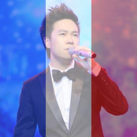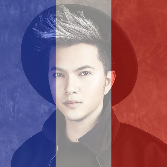 Ca sĩ Nam Cường để hình cờ Pháp. |