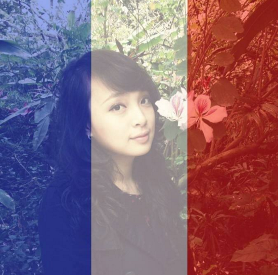 Á hậu Diễm Trang hòa vào hành động thay avatar, biểu tượng "Pray for Paris" cùng bạn trẻ Việt. |